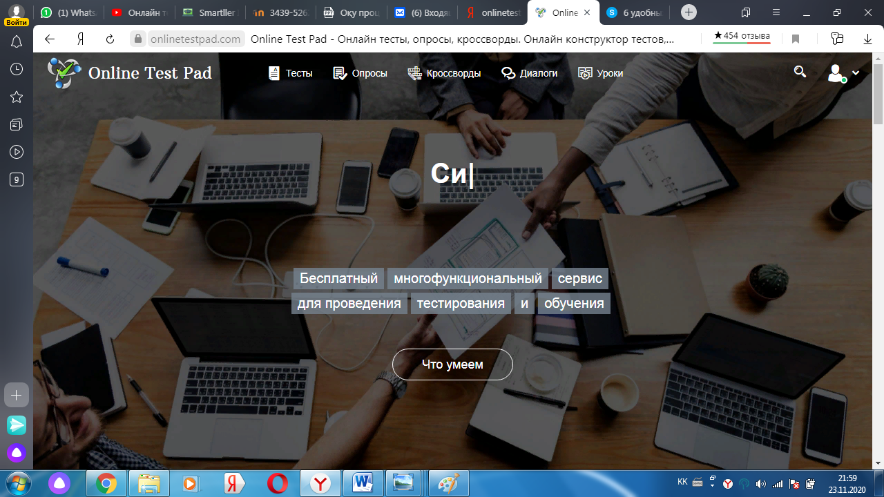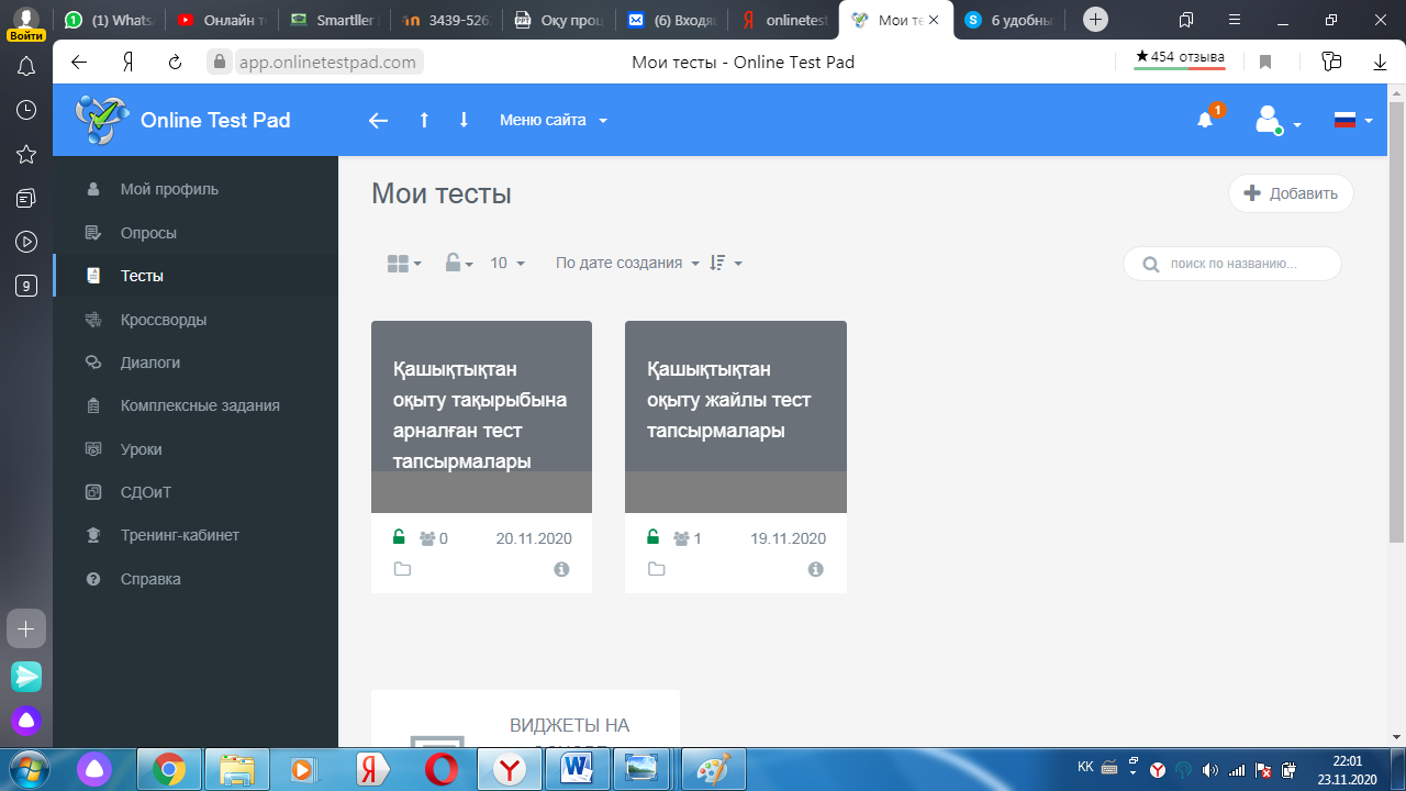 Бұл тесттерді жасауға арналған тағы бір тегін, көп функциялы қызмет. Мұнда сіз тест дизайнерлерін, кроссвордтарды, логикалық ойындарды қолдана аласыз, әртүрлі мақсаттар үшін диалогтық тренажерлер жасай аласыз. Ыңғайлы қашықтықтан оқыту және тестілеу жүйесі.