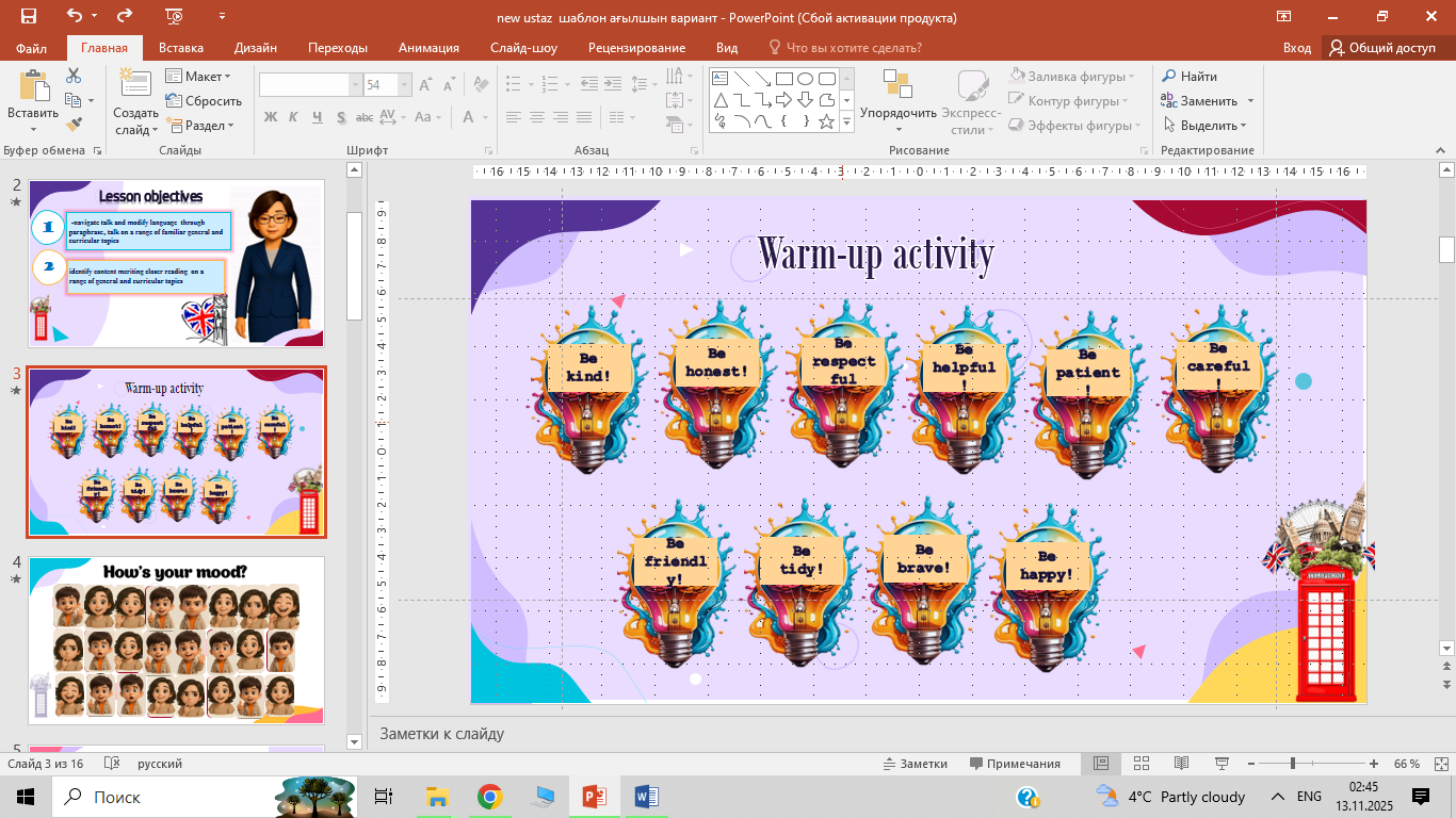 Organization moment : 1.Greeting. Ask about the weather. The teacher sets the lesson objectives, letting students know what to anticipate from the lesson.