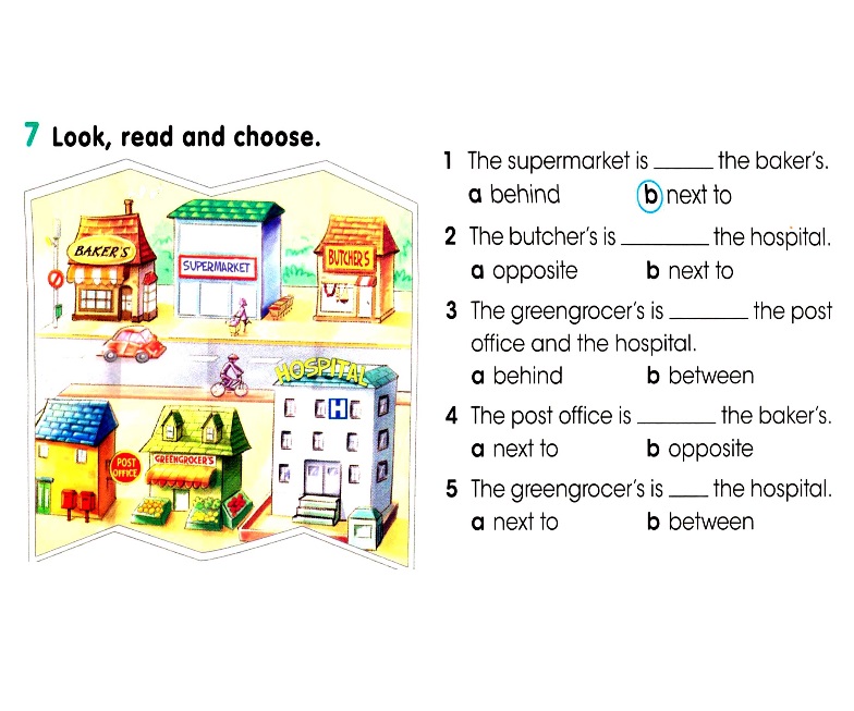 Our town: butchers, greengrocers, bank, post office, hospital, bakers, supermarket, sweet shop |