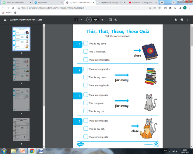 Lets watch video Explain the rules to children What the demonstrative pronouns are ? Ex:1 Learners look at the photo. Students make sentences using a demonstrative pronouns Explain the task and do an example together to make sure students know what they have to do, pointing out that only one of the words individually «Task work for individual pupils
