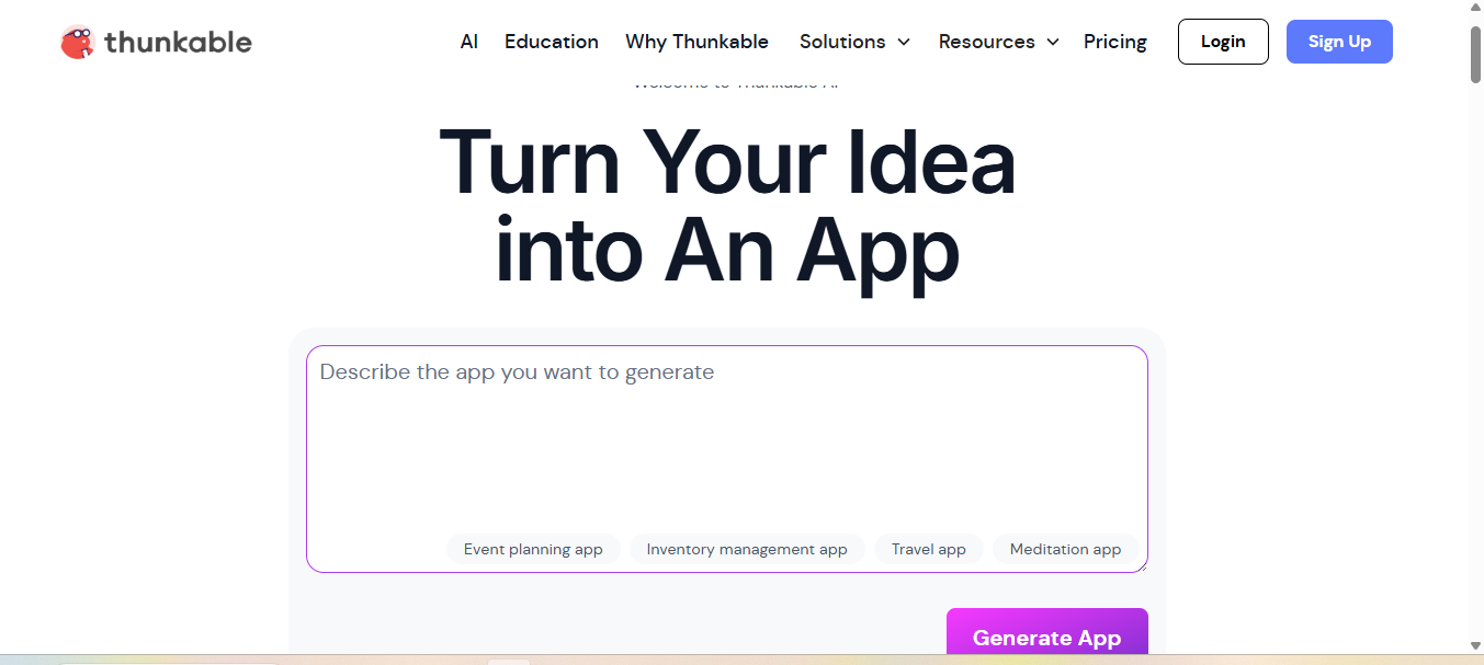 Thunkable енді бұрынғыдан да тезірек бастауға көмектесетін AI-мен жұмыс істейтін қолданбаларды құруды қамтиды . Нені салғыңыз келетінін сипаттаңыз, мысалы:
