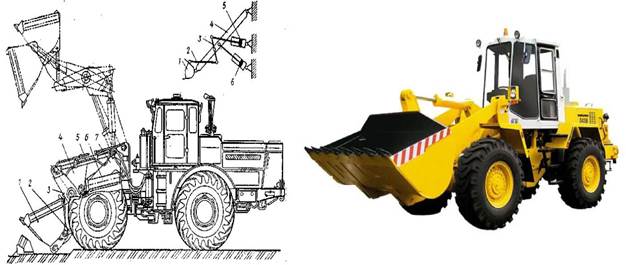Бір шөмішті тиегіштердің ауысымды жұмысшы органдары мен аспалы жабдықтары 45-суретте берілген.