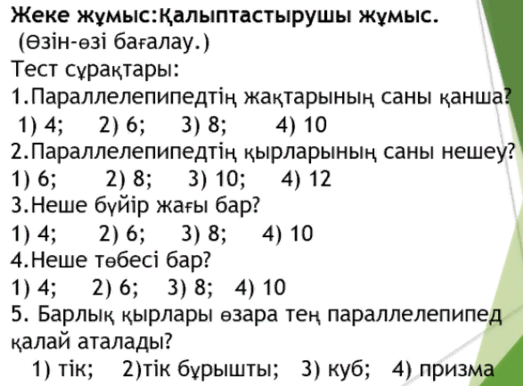тапсырмасы № 2,4,2 Тік бұрышты Параллелепипед тақырыбын