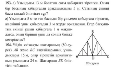 Екінші жұп Мұнараның биіктігі 60 метр, ал оның көлеңкесінің ұзындығы 80 метр.Осы деректерді пайдаланып күннің көкжиектегі бұрышының косинусын есептеңіз. Тапсырма 3 «Кім жылдам?» әдісі. Жеке жұмыс №153 ,154 есеп (87 бет)