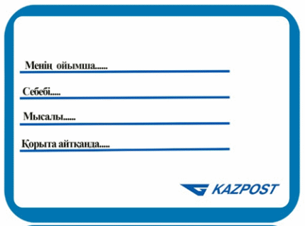 Оқушылар берілген тест бойынша жауаптарын даптеріне жазады. «Білім почтасы» әдісі бойынша өз пікірлерін жазып почтаға салады.