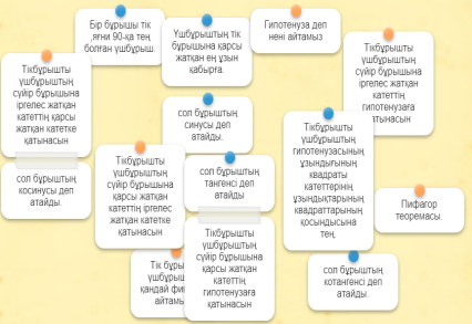 Тікбұрышты үшбұрыштың қабырғалары мен бұрыштары арасындағы қатыстар |