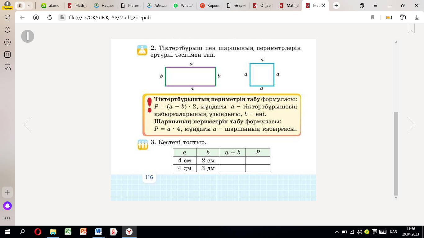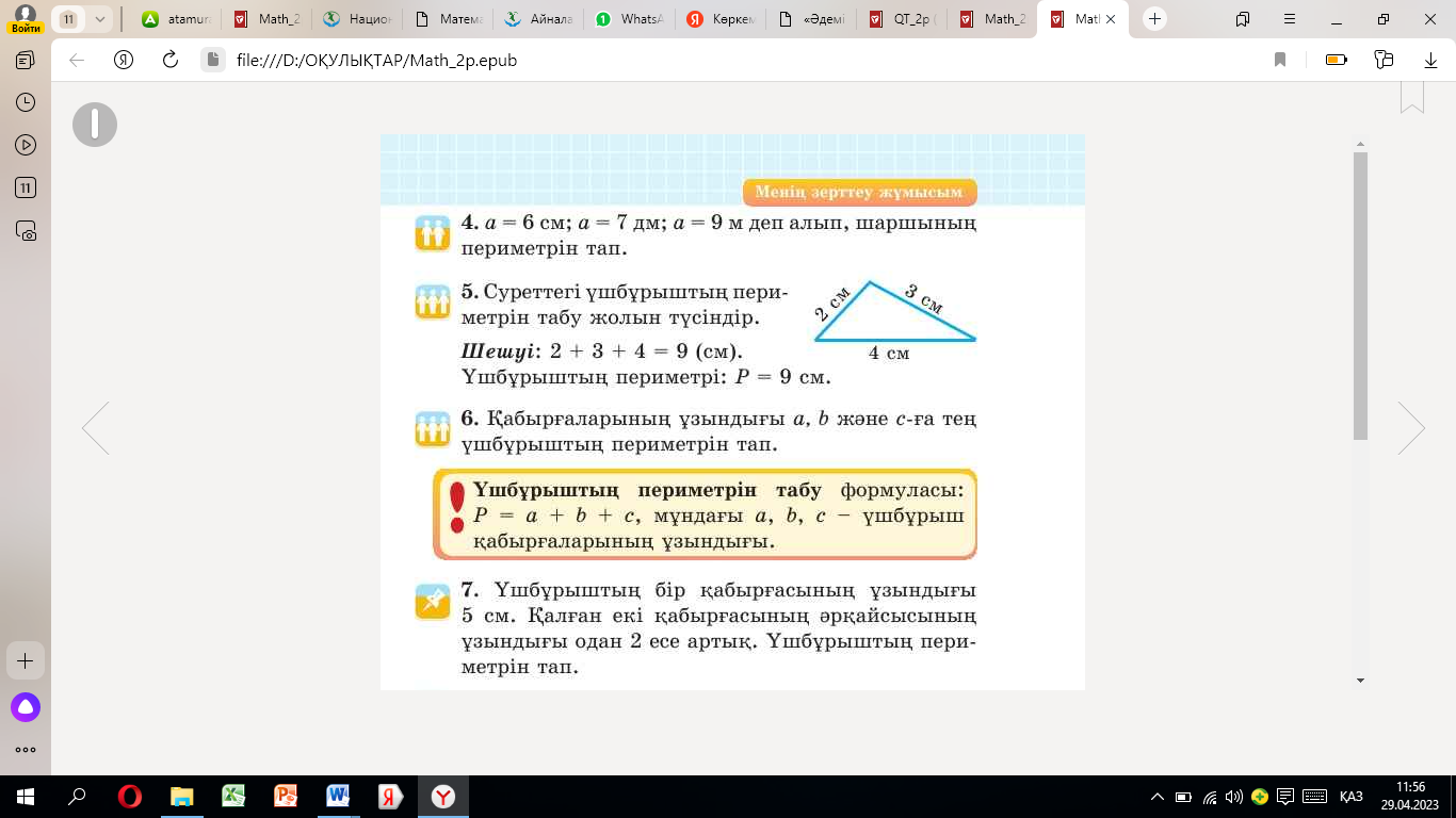 Тіктөртбұрыштың, шаршының, үшбұрыштың периметрін табу формуласы ҚМЖ 2 сынып