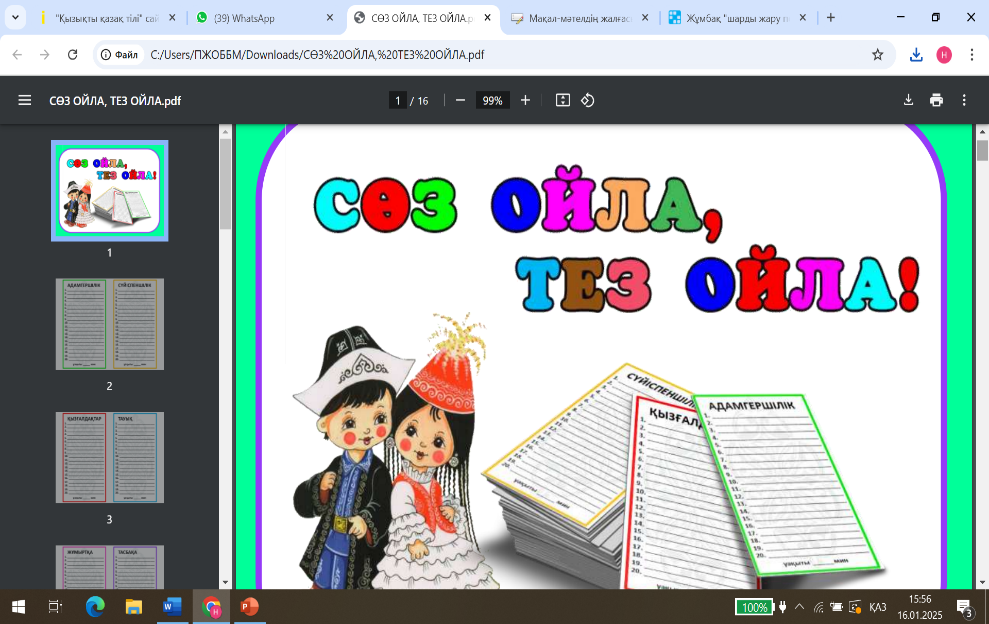 2 кезең- «Сөз ойла, тез ойла» берілген сөздерден сөз шығарады.