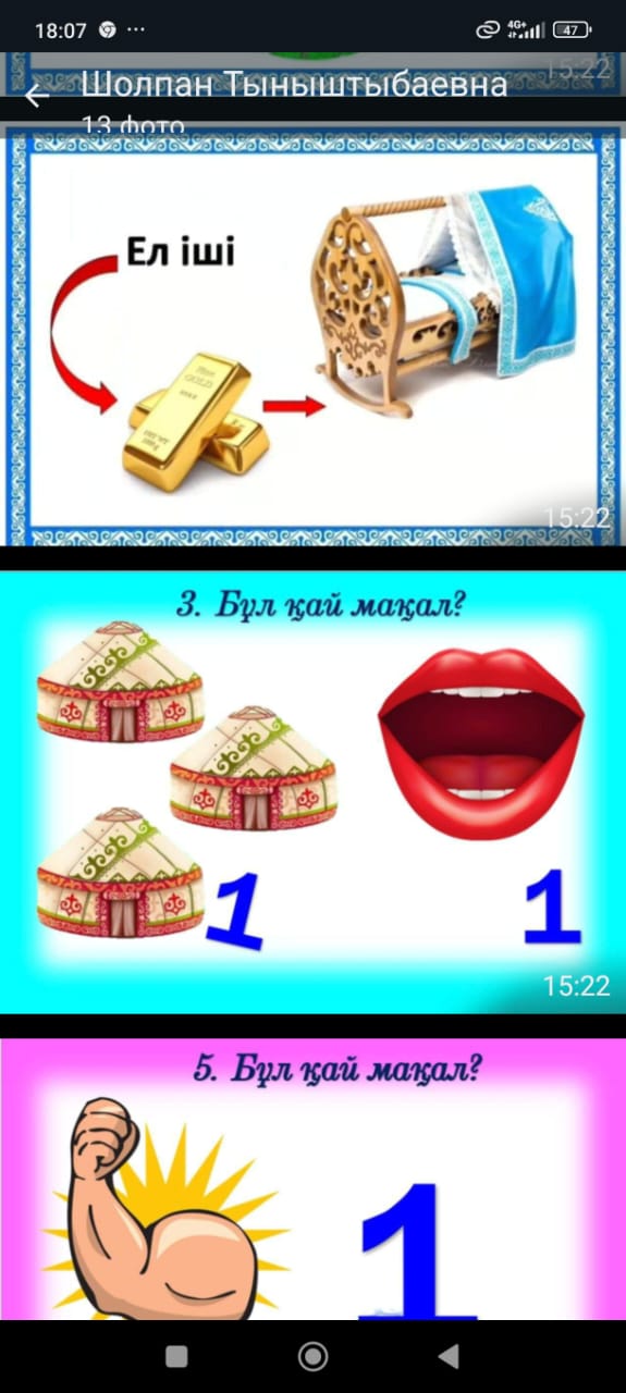 1-ойын «Бір сурет - көп мағына» /Бұл кезеңде сурет арқылы мақалды