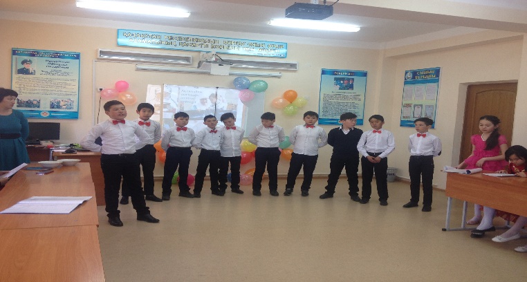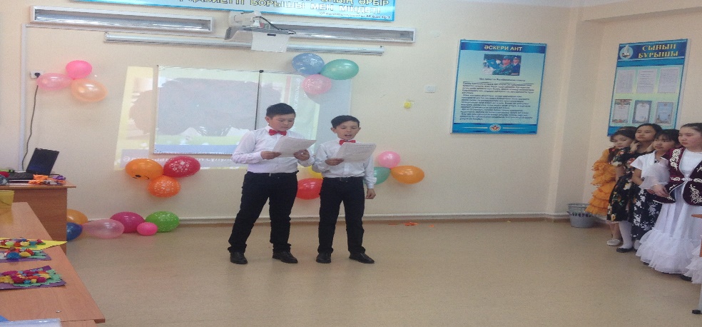 «Тіл – татулықтың тірегі» атты сайыс сабағын өткізгелі жатырмыз. Сабағымыздың соңында қай сынып қазақ тілінің білгірі болатыны анықталады. Сайысқа екі команда қатысады. Әр команда өзін таныстырады.