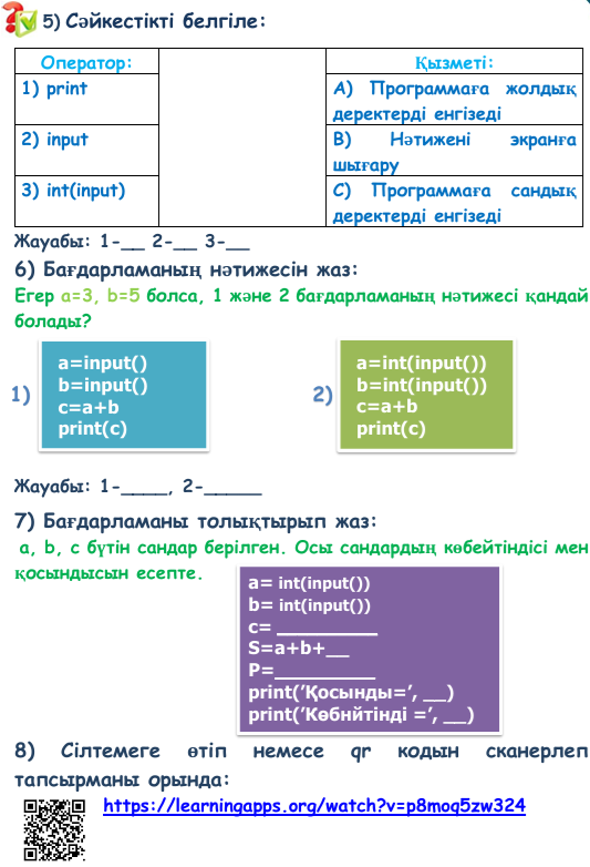 6.3.2.1 Python тіліндегі сызықтық алгоритмдерді жазу; |