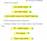 Дескрипторы: Тақырыпты және негізгі ойды анықтап үйренді.-1б Диалог жүргізе алды-1б