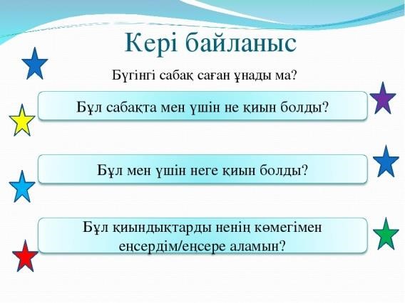 Сабақ Сабақтың соңында оқушылар рефлексия жүргізеді:Осы үш смайлик арқылы оқушылар