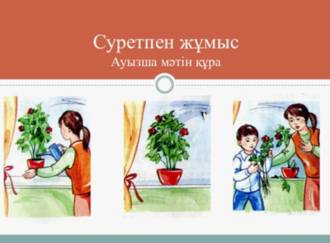 1 тапсырма Суретке қарап, әңгіме мәтінін құраңдар. Мәтіннен мұғалімнің көмегімен нақты ақпараттарды табыңдар. Ой қосыңдар, пікір алмасыңдар.