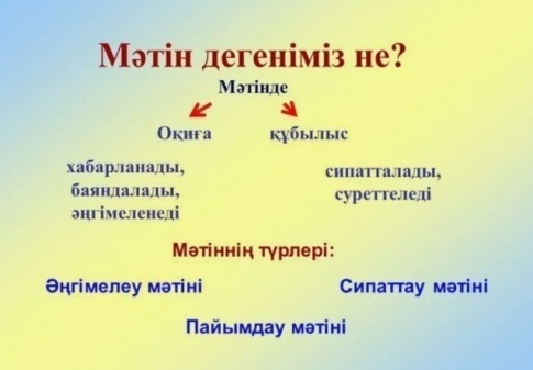 Оқушыларға зерттеу сабақтарына орай мәтiнмен жұмыс жасауды түсіндіру, оқу сауаттылығы үшін интербелсендi әдiс-тәсiлдердi айту. Мәтіндердің түрлерімен таныстыру.