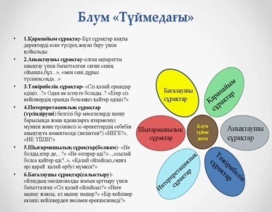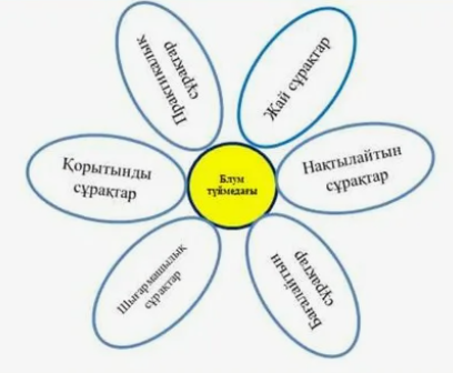 2 тапсырма «Блум Түймедағы» әдісі. «Мәтін қалай талдану керек?» мәселесіне орай алты сұрақ дайындаңдар.