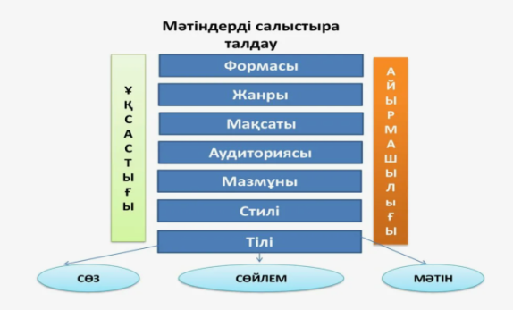 мәтіннің құрылымына, тілдік ерекшеліктеріне назар аударады.