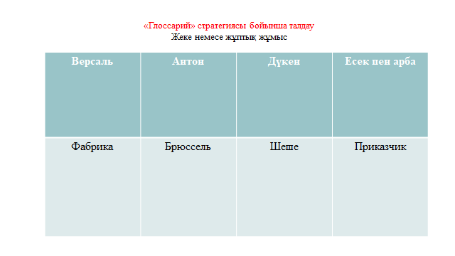 Оқушылар төрт топқа бөлінеді. Әр топқа тапсырмалар беріледі:
