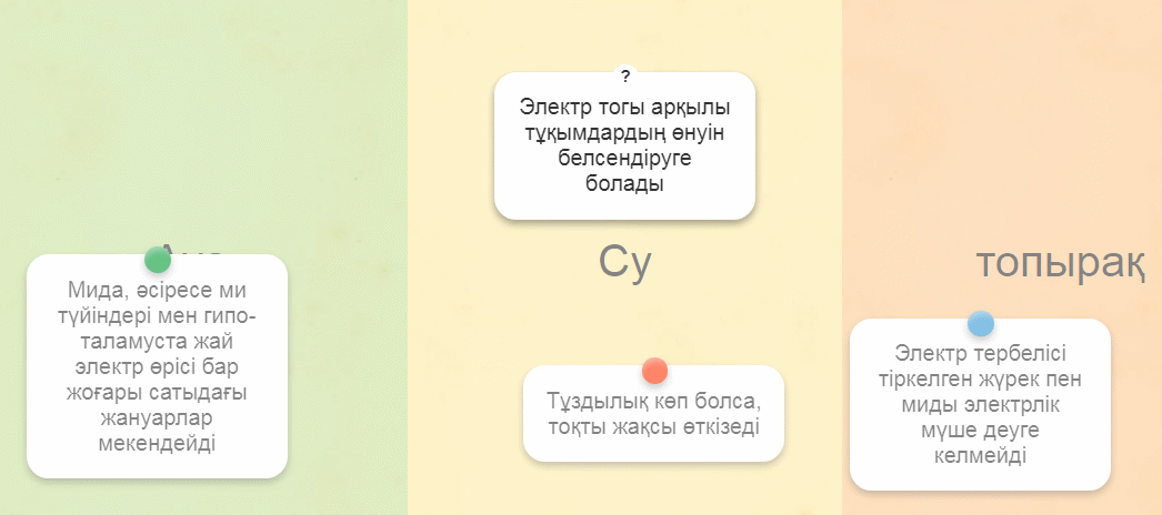Дескриптор: - құрлықта тіршілік ететін жануарлардың сол ортаға сай электрлік мүшелердің қозғыштығын белгілейді 1б - суда тіршілік ететін жануарлардың сол ортаға сай электрлік мүшелердің қозғыштығын белгілейді; 1б - топырақта тіршілік ететін жануарлардың сол ортаға сай электрлік мүшелердің қозғыштығын белгілейді 1б Бағалау «Бағалау парағы» |