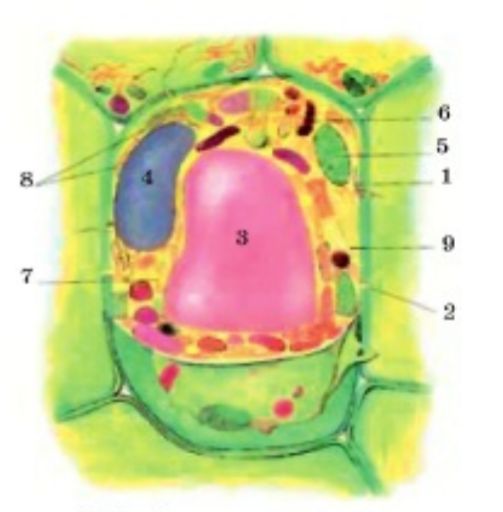 Дескриптор: -Өсімдік және жануар жасушаларының құрамбөліктерін анықтайды- 3 балл