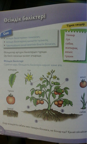 Сабақатың мақсатын таныстыру (Ұ) 1-тапсырма. Суретке қара. Өсімдіктің бөліктерін ата, көрсет