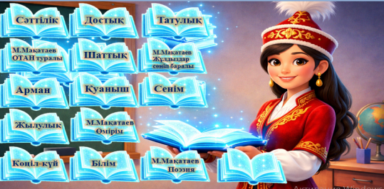 І. Ұйымдастыру кезеңі: « Мұқағали энергиясы» тәсілі бойынша жағымды психологиялық ахуал орнатады. М.Мақатаевтың өлеңін орындайды.