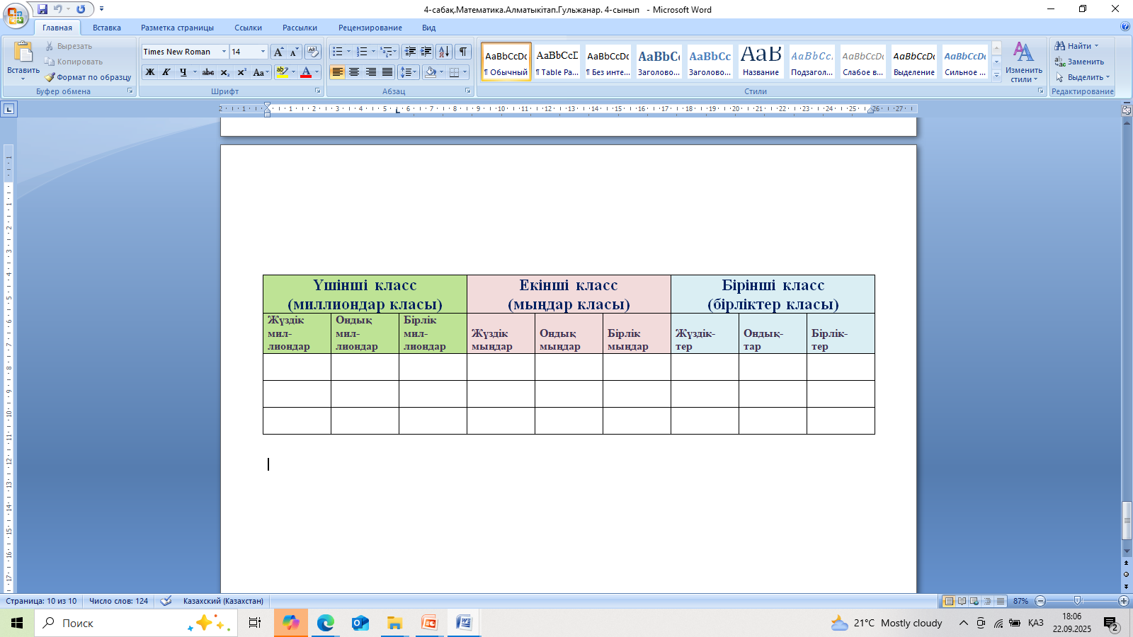 4.1.1.3 көптаңбалы сандардың разрядтық, кластық құрамын және разрядтық бірліктердің жалпы санын анықтау, разрядтық қосылғыштар қосындысына жіктеу;