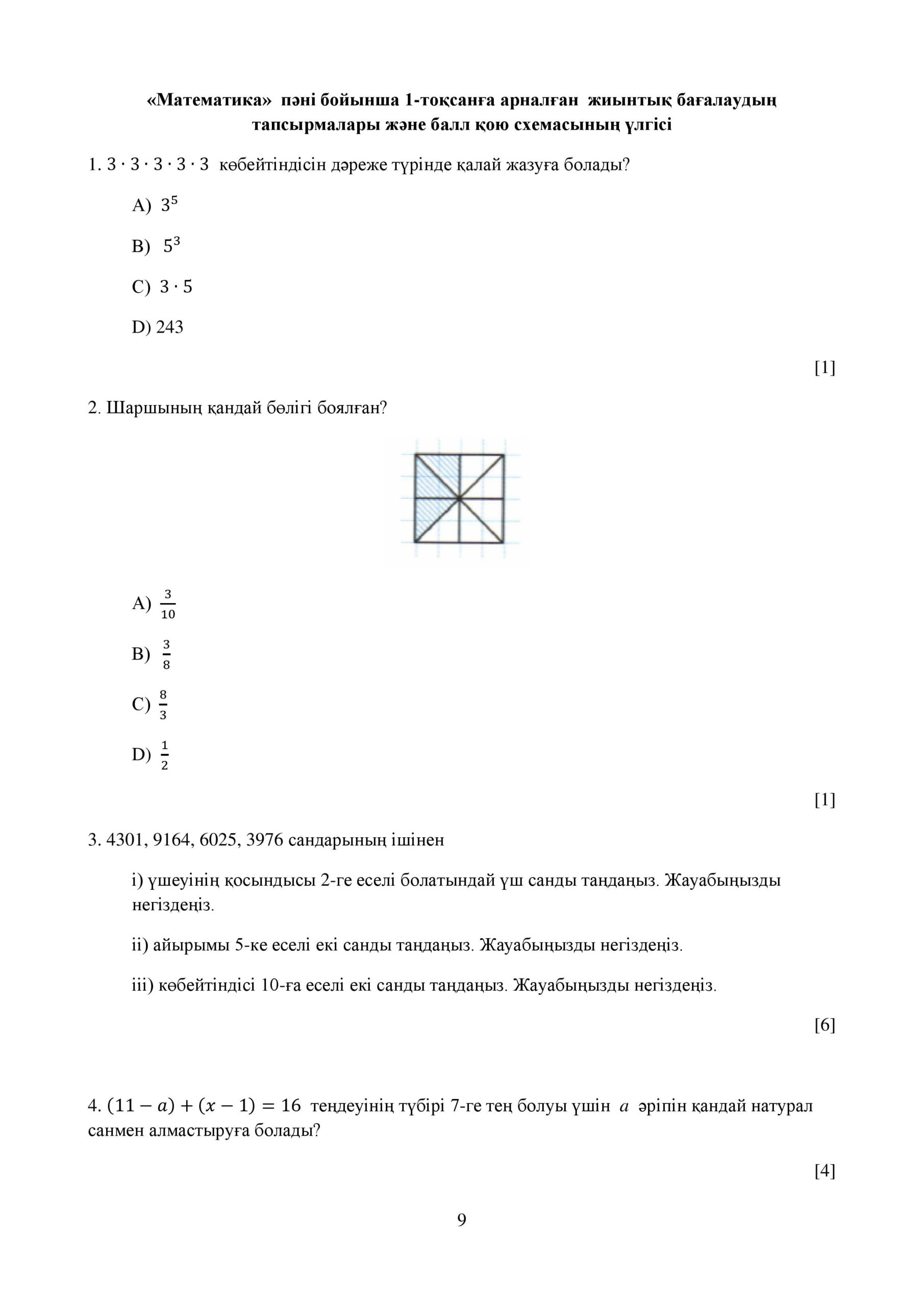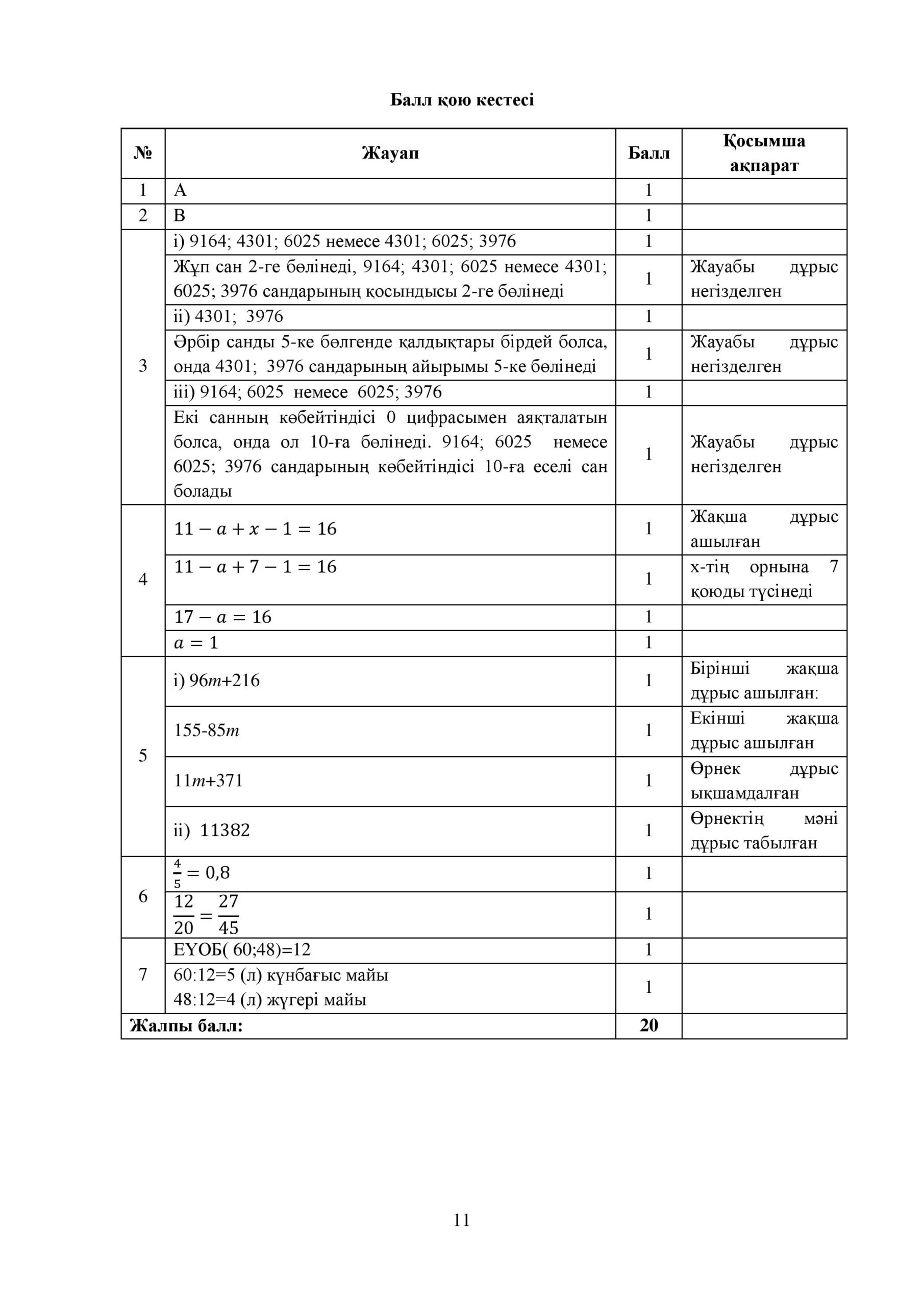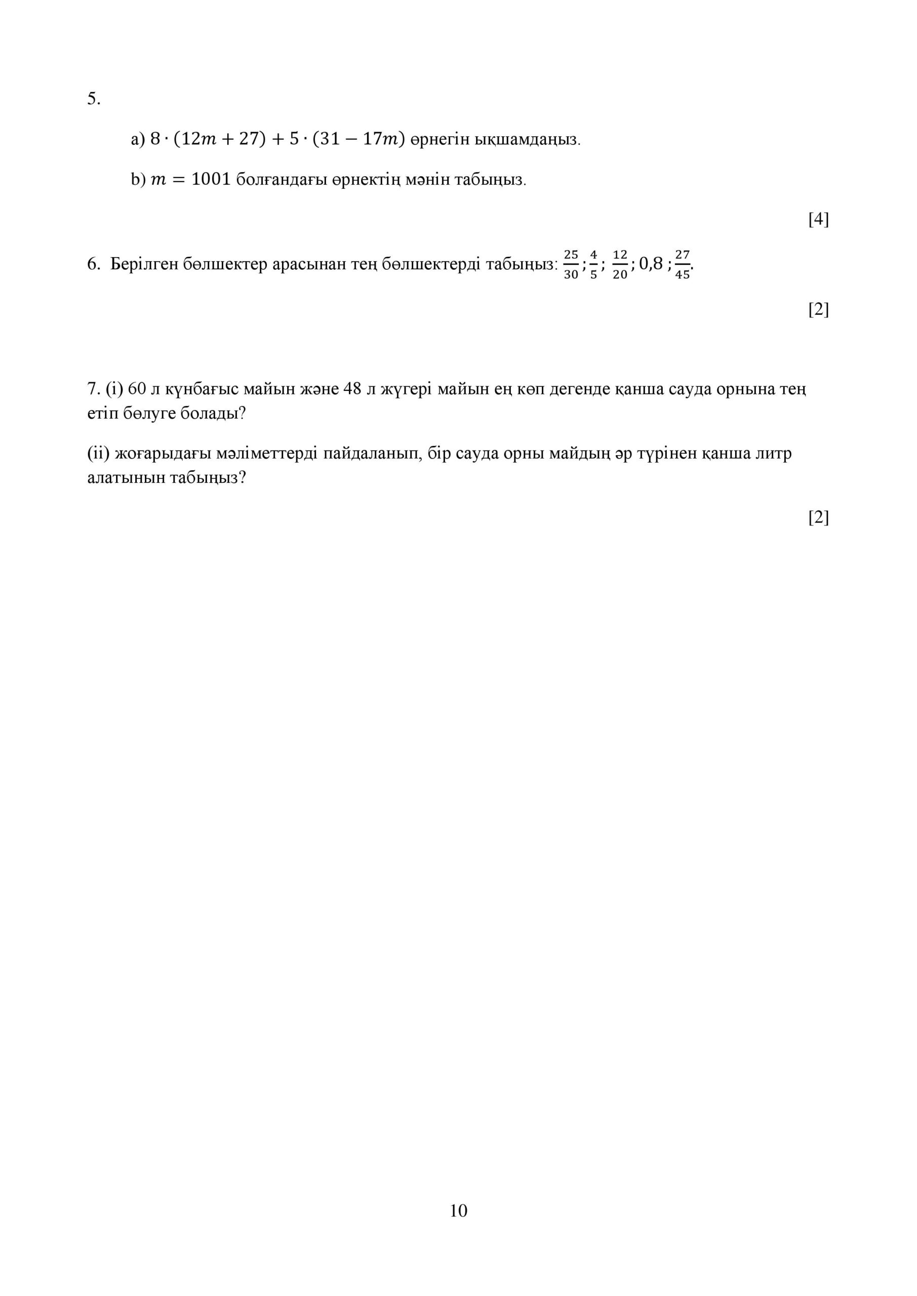 ТЖБ 1 токсан 5 сынып Математика