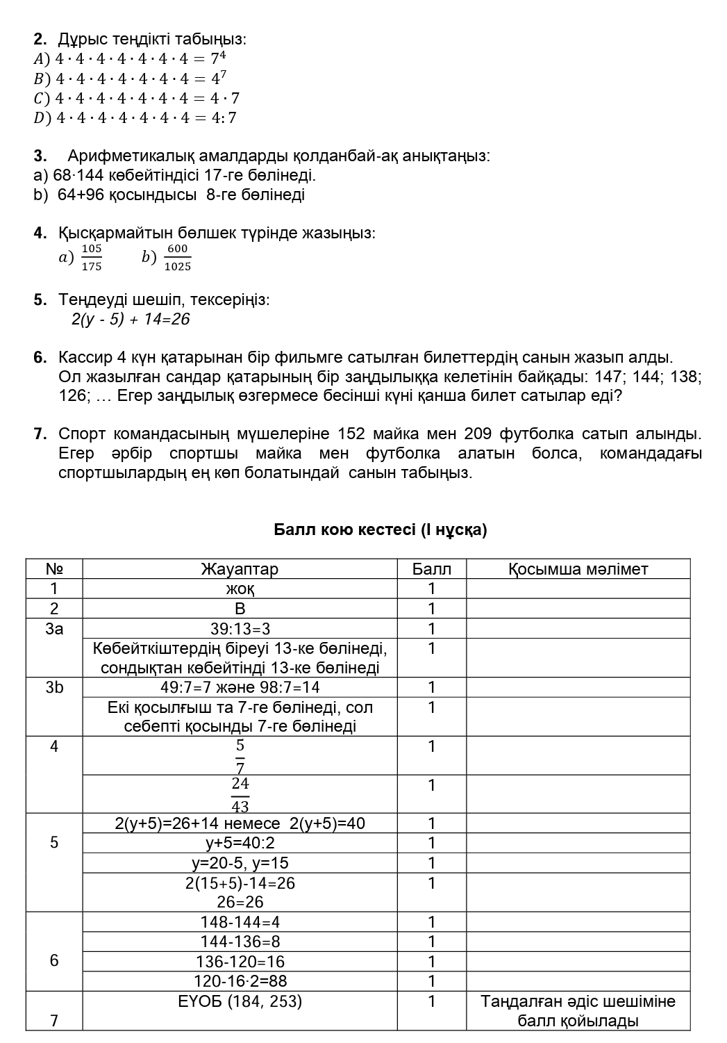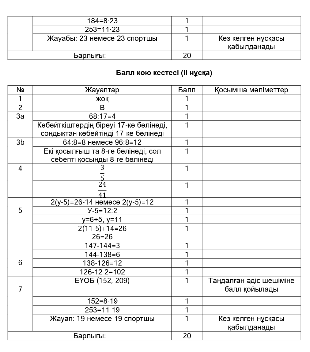 ТЖБ 1 токсан 5 сынып Математика