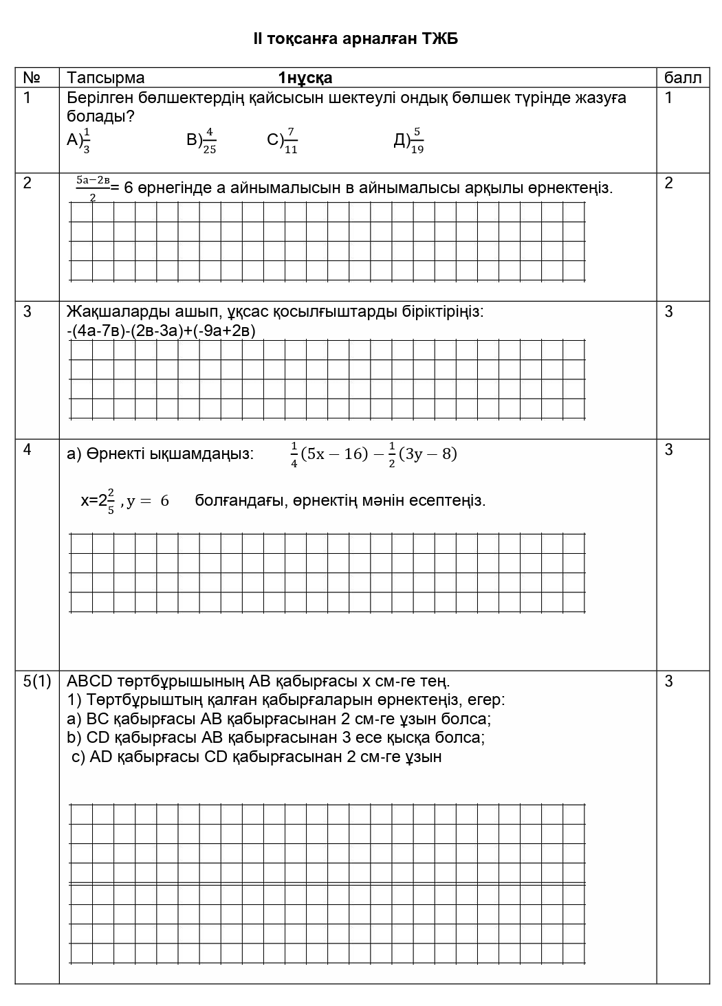 ТЖБ 6сынып ІІтоқсан