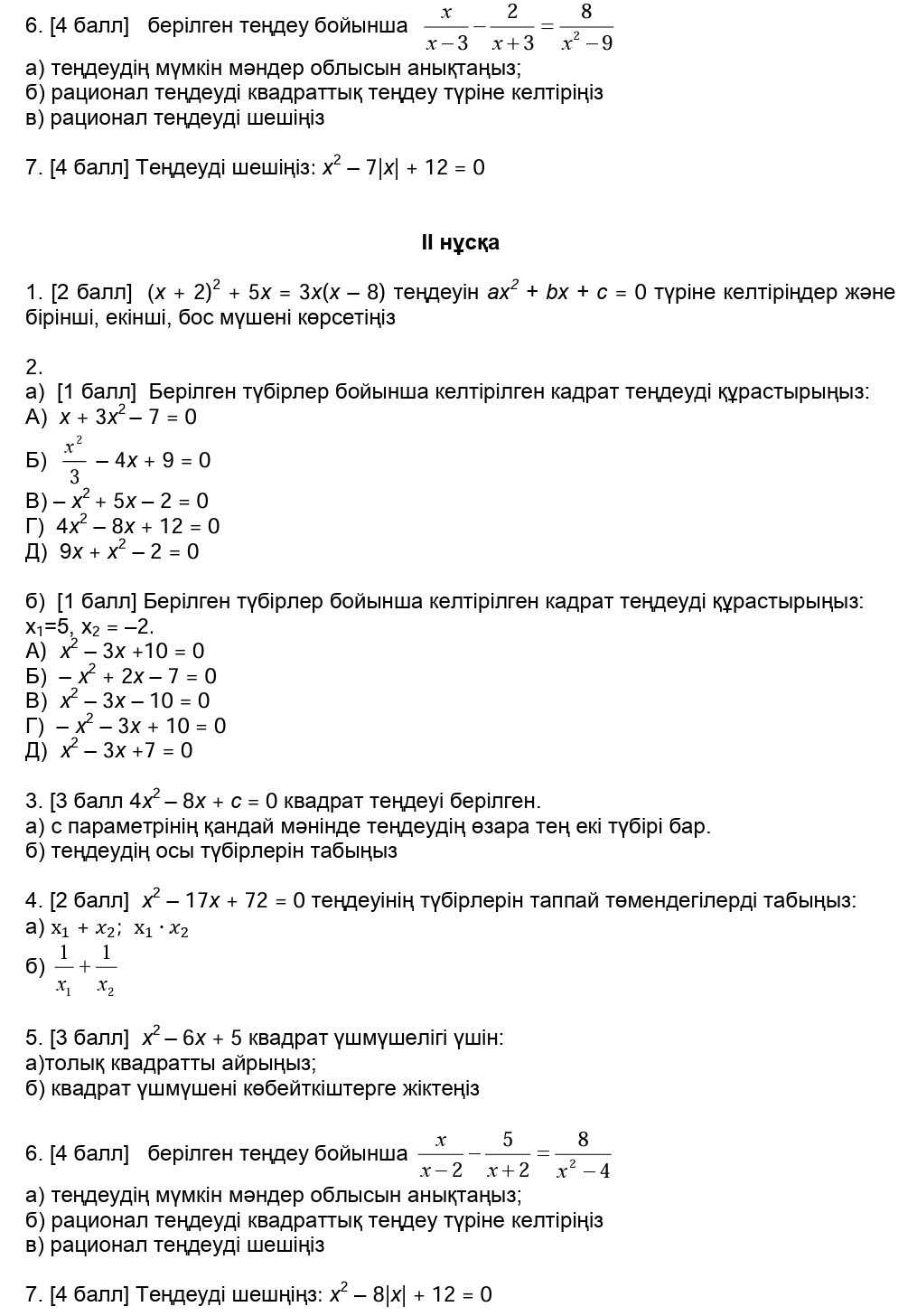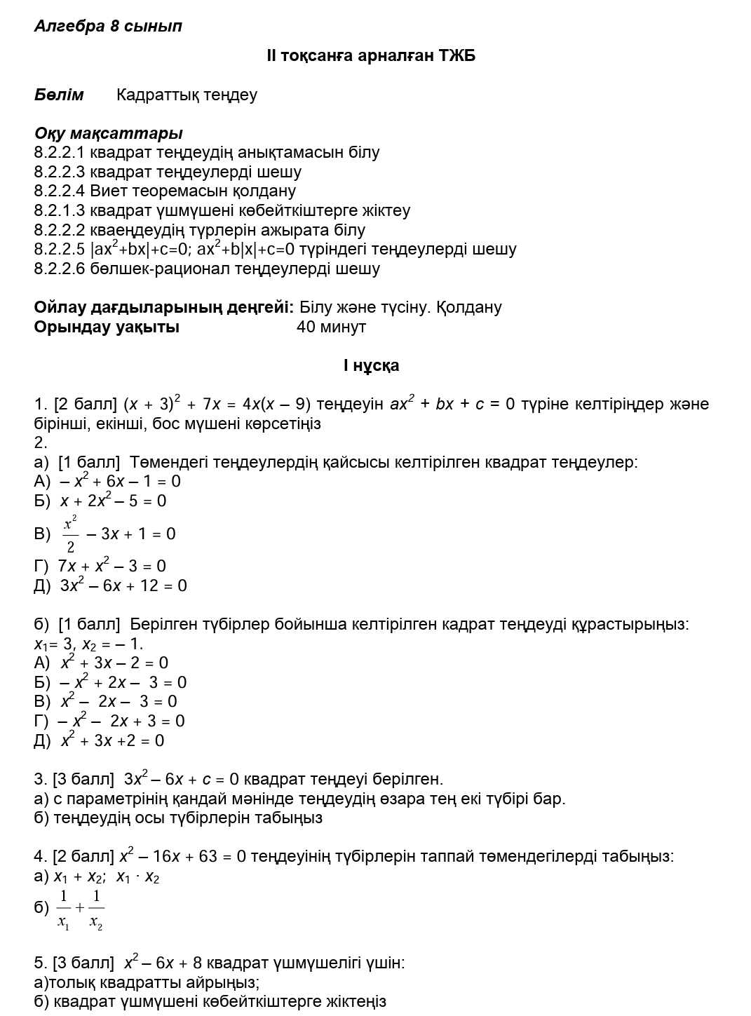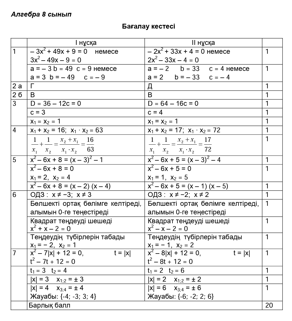 ТЖБ 8сынып Алгебра 2токсан