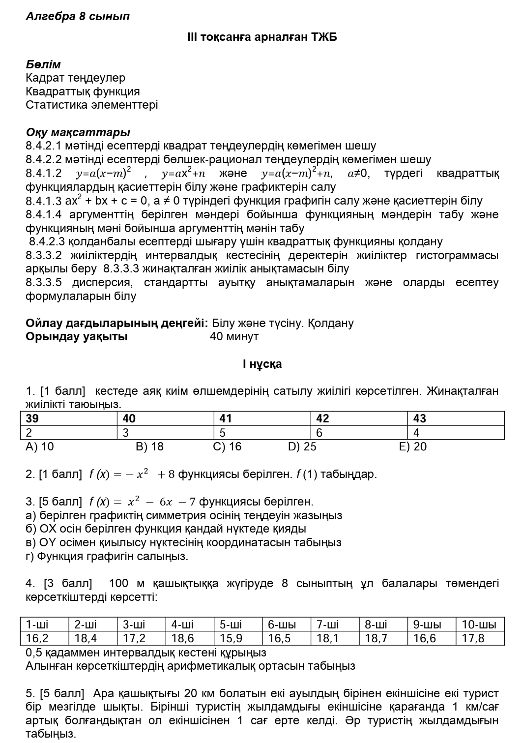 ТЖБ 8сынып Алгебра 3токсан