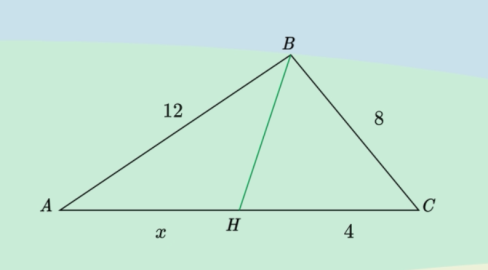 АВС үшбұрышының ВH биссектрисасы AС қабырғасын сәйкес AH және CH кесінділеріне бөледі. АВ=8cм, ВС=12,8cм