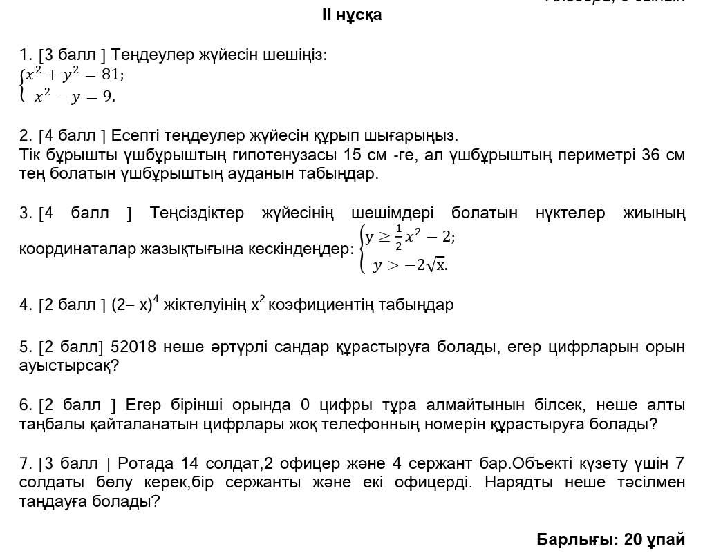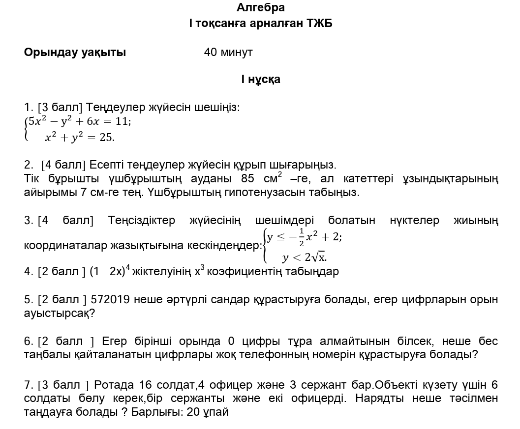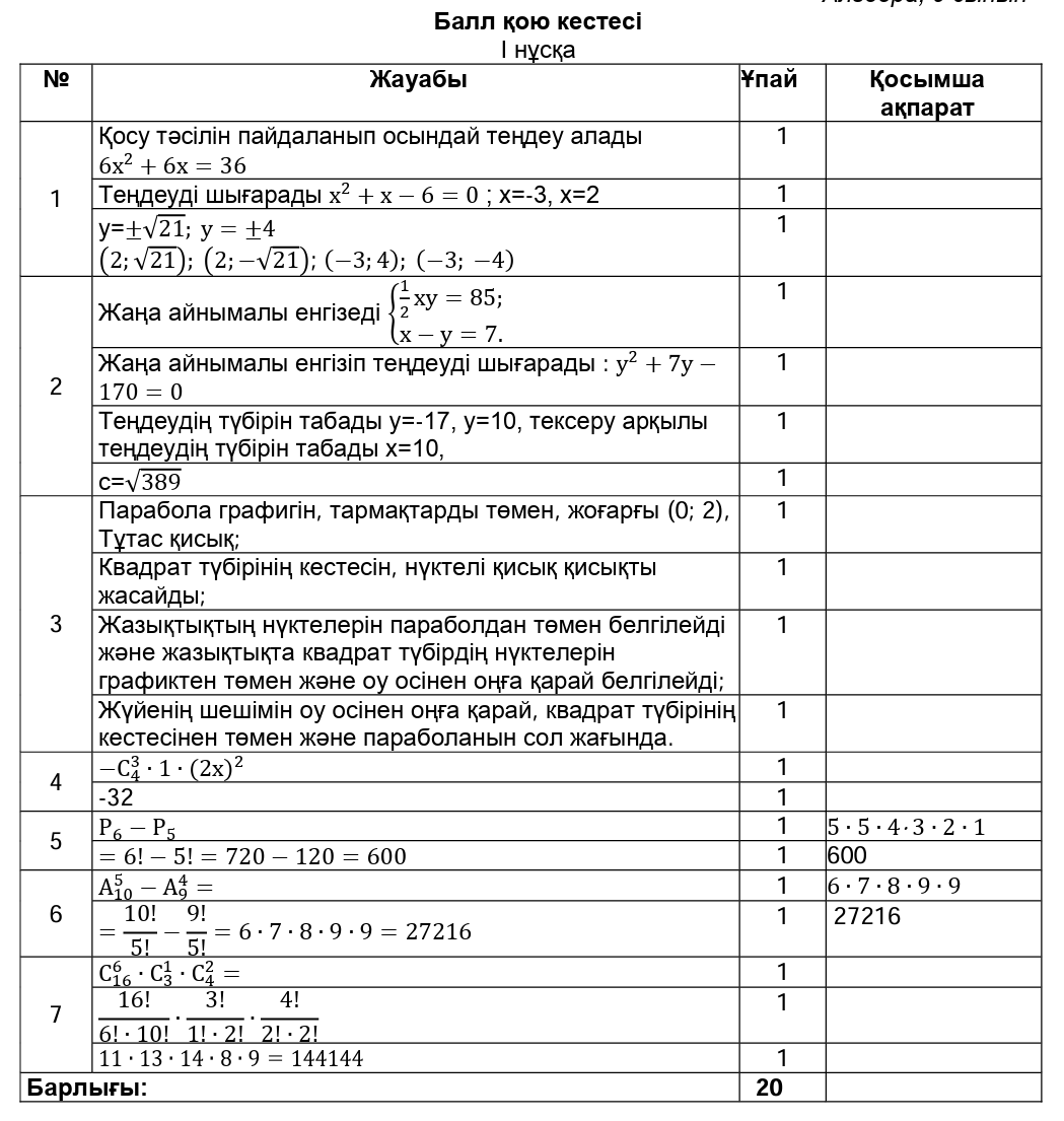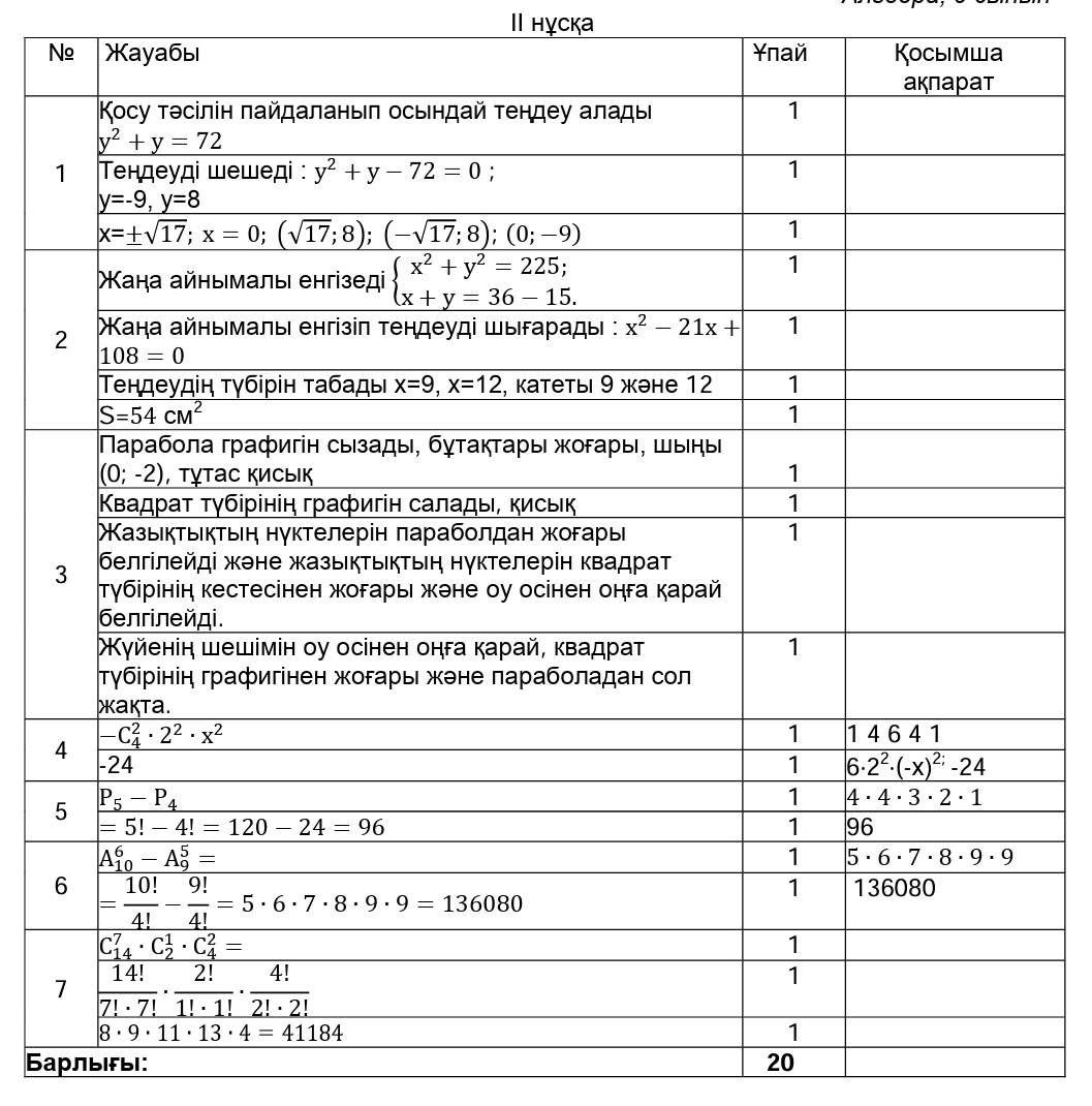 ТЖБ 9сынып Алгебра 1токсан