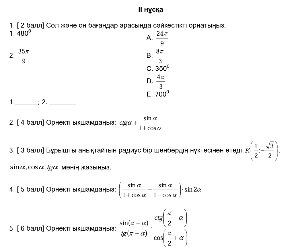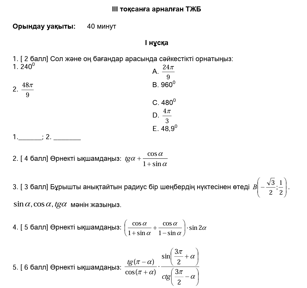 ТЖБ 9сынып Алгебра 3токсан