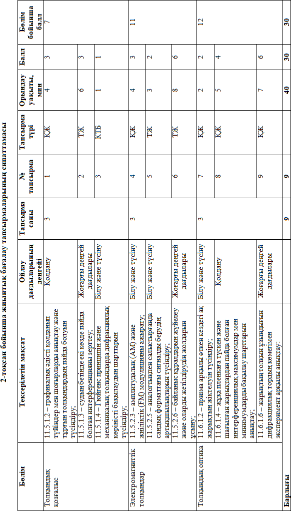 «Толқындық қозғалыс» бӛлімі бойынша жиынтық бағалау 15