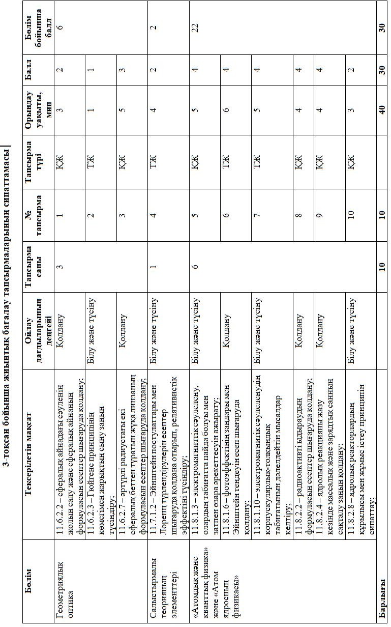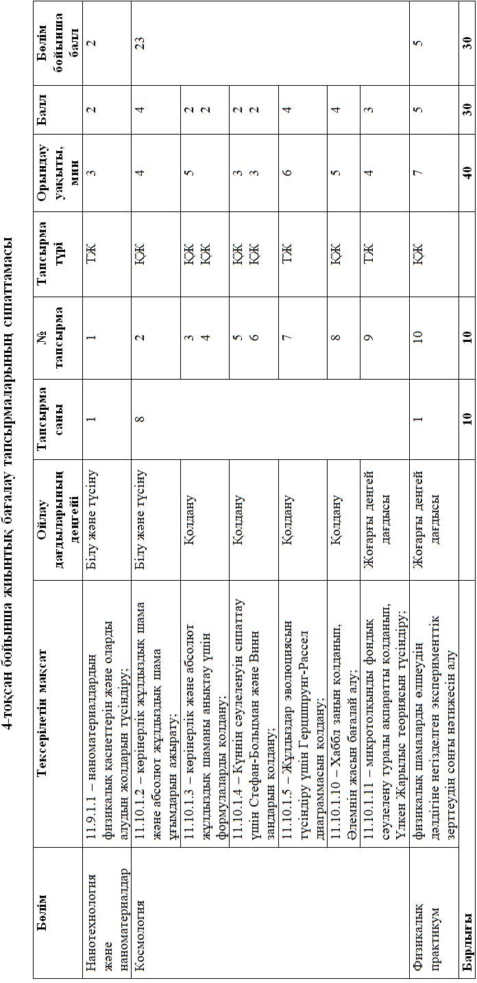 Берілген нҧсқа кӛп таңдауы бар тапсырмаларды, қысқа және толық жауапты сҧрақтарды қамтитын 6 тапсырмадан тҧрады.