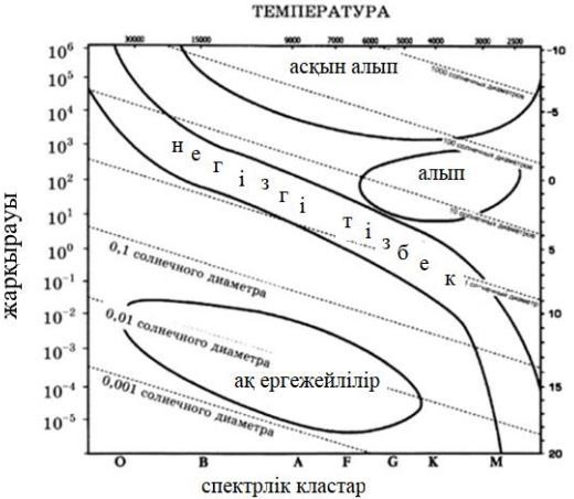 Суретте Герцшпрунг-Расселл диаграммасының кескіні кӛрсетілген.