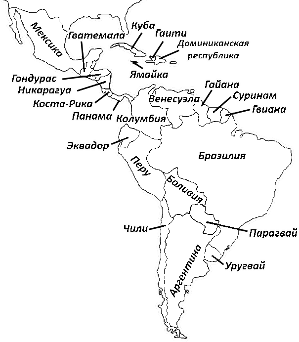 а) Латын Америкасы; b ) Солтүстік Америка; в) Латын Америкасы атауы осы аймақты құрайтын елдердің алфавитімен байланысты.Аймақ бірнеше шағын аймақтардан тұрады: Оңтүстік Америка, Мезоамерика, Кариб теңізі елдері. |