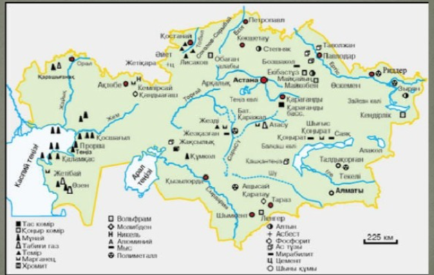 4.3.4.2 Қазақстанның негізгі пайдалы қазбалары өндірілетін кен орындарын картадан көрсету |