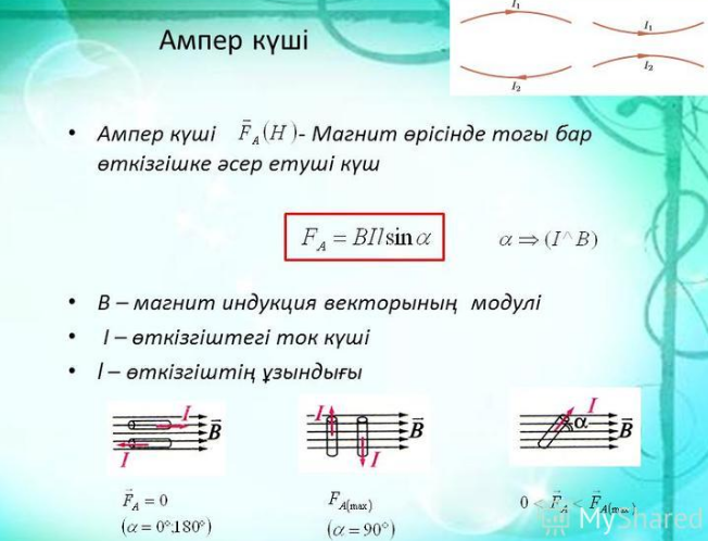 Ампер күшін сол қол ережесін қолдана отырып, анықтай алады