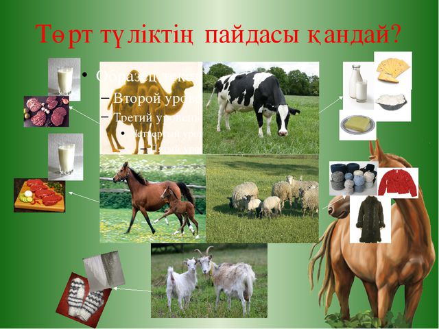 2-топ. Төрт түліктің шаруашылыққа тигізетін пайдасы туралы жазу.
