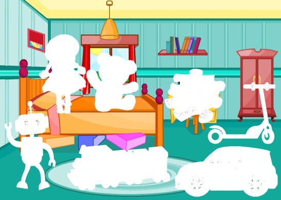 Organization moment : 1.Greeting. . (Whale class, Individually) Divide students into 4 groups with puzzles. Brainstorming Play "Hide and Find" Let's start off with a fun game. Before the class, hide the following toys around the classroom (under chairs, in bookshelves, etc.): teddy bear, doll, robot, train, puzzle, car, ball. Also, make sure you have printed the same flashcards as the toys you have hidden. You will need at least one toy per student Have all of your students sit down. Give each one a toy flashcard and tell them that hidden around the room are some toys which they have to find. Model the activity, by showing one toy flashcard (e.g. a picture of a doll) - wander around the room looking in different places until you have found a toy doll. Now, let everyone get up and search around for their toy and then sit down again in their place with the toy Once all the toys have been found go around the class and have each student hold up the toy they have found.
