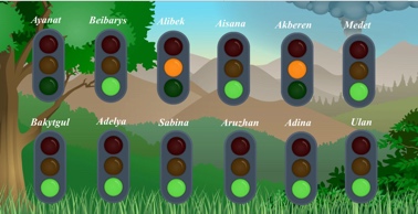 Students answer for teacher’s questions. Students colour jar with their feeling’s colour. Ss use “Weather chart” and tell about weather. Students try to find hidden words. The aim: To develop pupils vocabulary and create friendly atmosphere Students' attention is drawn to the lesson. Determines the topic and purpose of the lesson |