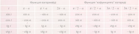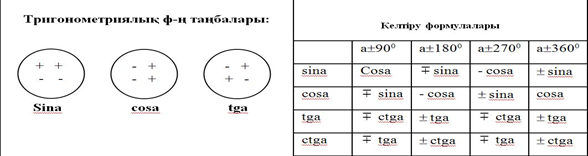 Тригонометриялық функциялардың графигі; Функциялардың жұптылығы/тақтылығы; Периодты функциялар Таңба тұрақтылықтың аралықтары;. |