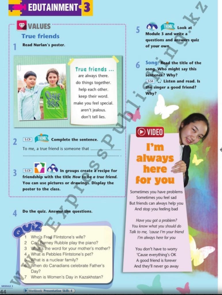 The picture shows friends Today's lesson topic is friends children playing about friends reads the text carefully and translates Answer For me, a friend is only the one who is honest with me, For me, a friend is only the one who is a kindred spirit. For me, a friend is the one who will not betray me listens to audio assembles puzzles in a team |