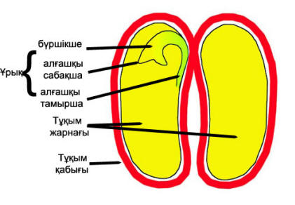 2. Ұрық қажетті қорек заттарын қос жарнақты тұқым мен дара жарнақты тұқымның қай бөлігінен алады?____________________________________________________________________