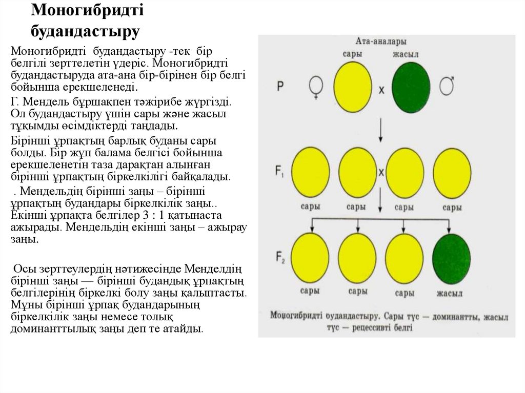Тұқымқуалаушылық заңдылықтарының цитологиялық негіздері.Моногибридті будандастыру. |
