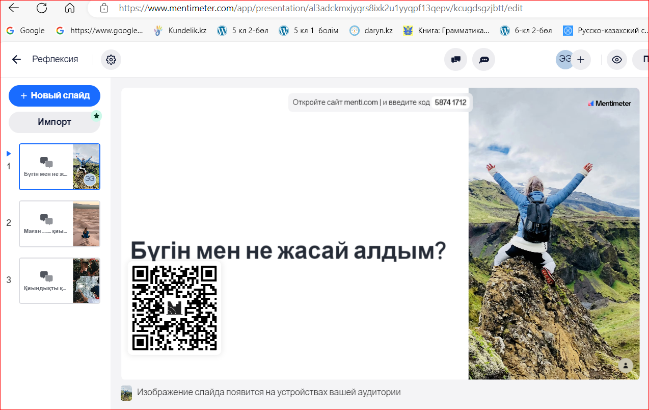 ҚБ: мұғалімнің бақылауы, өзін-өзі бағалау