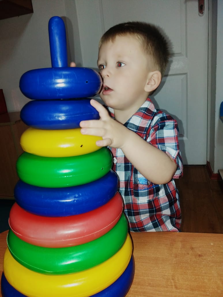 ІІ – кезең. Проблемалық ізденушілік Қане түсу тұрайық. Амандасып алайық,Сәлеметсіңдер ме, балалар!Сәлеметсіз бе апай!Балаларға тақпақтарды ұсыну.Балалар қане, қазір біз түрлі - түстерге әлеміне саяхат жасаймыз.1 - аялдама: «Шарлар» аялдамасы. Ал, қане балалар біз аялдамаларды өтіп шығу үшін автобуспен жүріп барамыз.Қане балалар біз бірінші аялдамамызға келдік түсіңдер. Біз қандай аялдамаға келдік? «Шарларды өз себетіне жинаймыз». Дөңгелек шарларды себетке жинап қойып, балаларды шығарып музыкамен сол шарларды, өз түстерімен себетке жинатқызу.Ал балалар енді, келесі аялдамаға барайық.2 – аялдама «Үйшік» аялдамасы «Үйдің терезелерін саламыз». Балаларға геометриялық пішінді үйдің бейнесін беріп, сол үйдің терезелеріне өз - өз пішіндерін дұрыс орын – орына қоямыз. (Музыкамен)Жарайсыңдар балалар!Сергіту кезеңі:Балалар автобусымызға мінейік келесі аялдамаға кеттік. Балалар бұл қандай аялдама?3 - аялдама «Пирамида» аялдама. Балалар бірінші біз пирамиданы жинамас, бұрын ең үлкенінен кішісіне қарай жинаймыз. Ал балалар апаймен бірге жинаймыз. (Музыкамен)Жарайсыңдар балалар! Балалар біздің енді топқа кететін уақытымыз болды. Топқа кеттік. Автобусқа отырып топқа келеміз. Қызыл, сары, көк түсті. Міне шарлар көп тіпті. Қане қайсысын таңдайсың, түсін біліп алғайсың. Ақ қанатты көбелек,Көк қанатты көбелек,Қызыл қанат көбелек. Біздің үйге келек кет. Балалар автобустан түсіп, аялдаманы атайды.Бірінші аялдама «Шарлар» аялдамасы. Балалар қуана – қуана қызығушылық танытып шарларды жинайды.Балалар апаймен бірге геометриялық пішіндер арқылы үйдің терезелерін салады.Бала - бала балақанҚане көрсет алақан.Саусақтарым айбат, Былай – былай ойнат,Топ – топ басамыз, Шапалақты қосамыз, Жаса, жаса алтын күз Жаса, жаса жарқын күз.Пирамида аялдамасы.Апаймен бірге пирамиданы балалар жинайды.